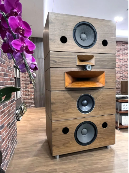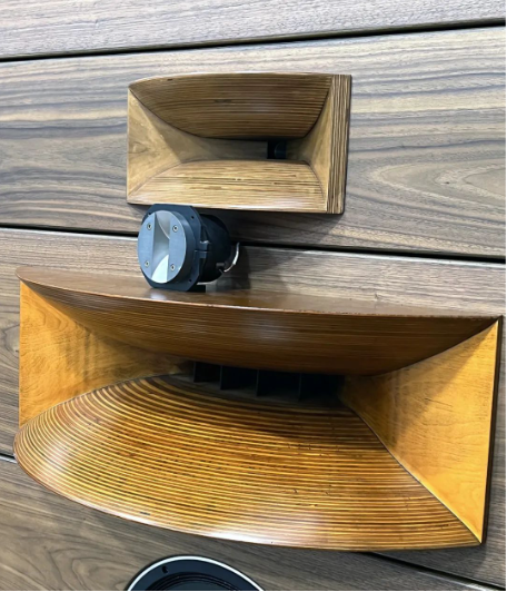 全部TAD的单元。TD4001驱动头+TH4001木号角的中音(负责800Hz-5kHz最重要的中频段)、TD2001驱动头+TH2001木号角的高音(负责5kHz以上高频段),中间还增添了ET703超高音(在7kHz以上增加泛音)
