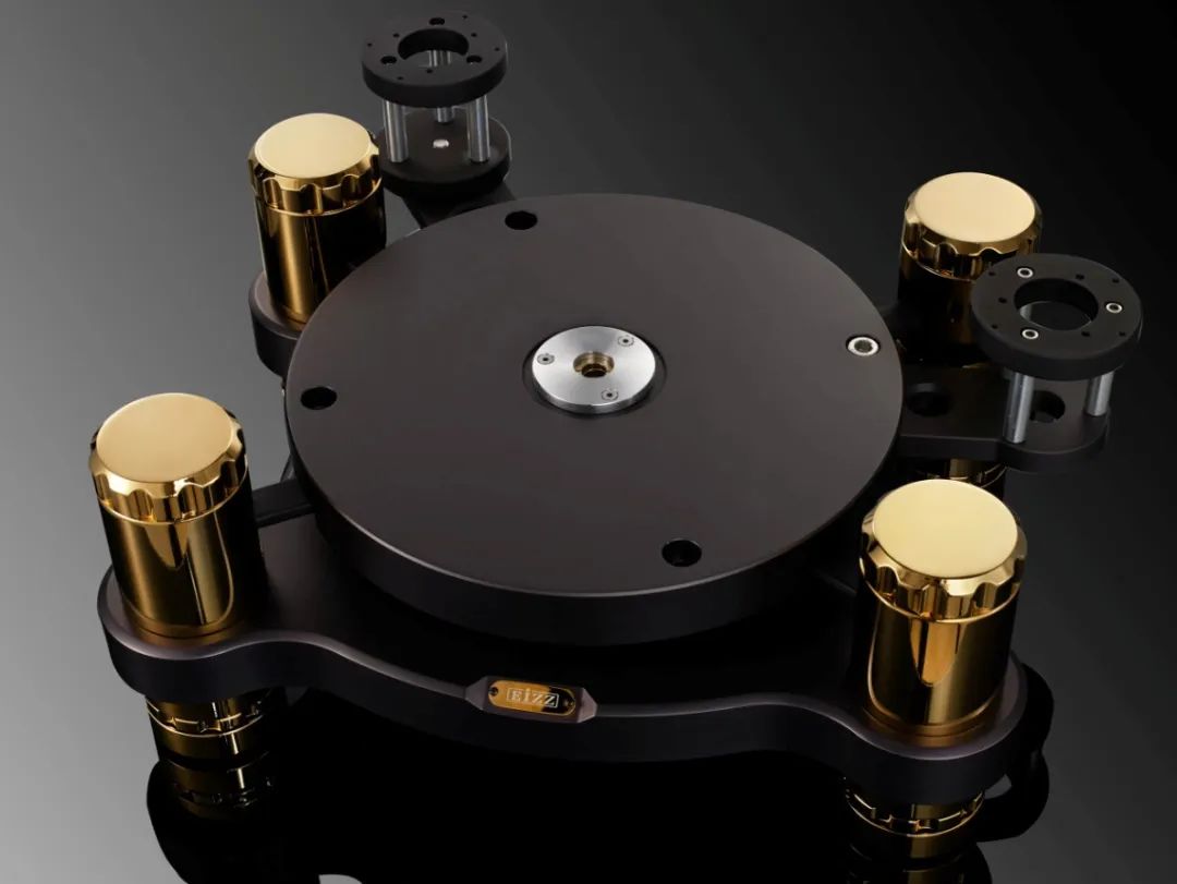转盘分为四种不同材质,提供不同的惯量阻尼,唱盘材料分别为:■A款铸造合金铜唱盘(重量15KG加工精度0.005mm,最大直径同心度+/-0.01mm)■B款铝合金氧化转盘(重量10KG, 加工精度0.005mm,最大直径同心度+/-0.01mm)■C款亚克力转盘(重量3KG加工精度0.005mm,最大直径同心度+/-0.01mm)■D款轻质铝合金转盘(重量6KG加工精度0.005mm,最大直径同心度+/-0.01mm),同时EIZZ也为客户提供了不同的需求,可按照客户需求定制特殊材料的转盘;